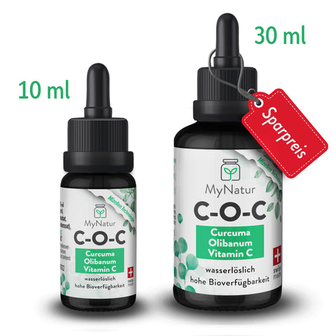 COC ist eine revolutionäre 3-Phasen Mischung bestehend aus Curcumin, Weihrauch und Vitamin C.